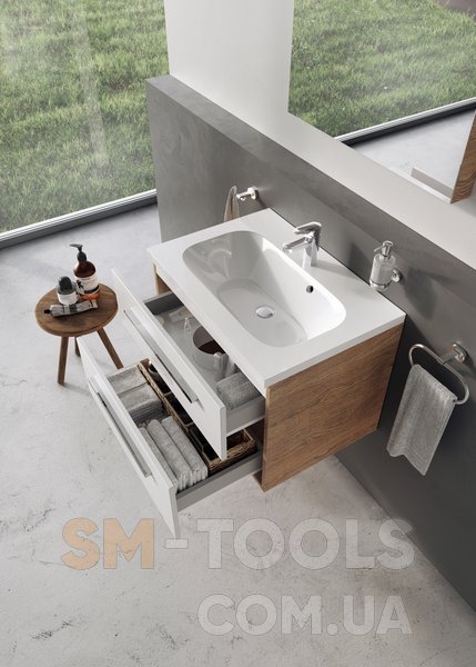 Шафка під умивальник SD Chrome II з двома ящиками, в білому кольорі (лакований МДФ), з можливістю вибору кольору корпусу. Шафка поставляється в зібраному вигляді, включаючи монтажний комплект (петлі, шурупи, наклейки) і ручки.