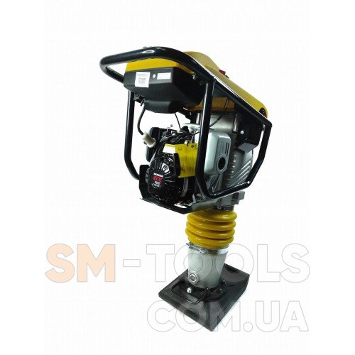 Органы управления удобно расположены. Рукоятка газа под левой рукой, а переключатель вкл/выкл под правой. Ручки, за которые держится оператор, прикручены к трамбовке через резиновые виброгасители. Таким образом, оператор защищен от вредных вибраций.