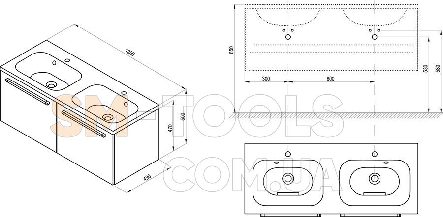 Практична конструкція внутрішнього простору шафки дозволяє зберігати порядок серед речей. Подвійним умивальником одночасно можуть користуватися дві людини, а шафка без проблем може помістити в собі усю необхідну косметику і приладдя для ванної кімнати. Шафка обладнана двома високими ящиками (40 см).