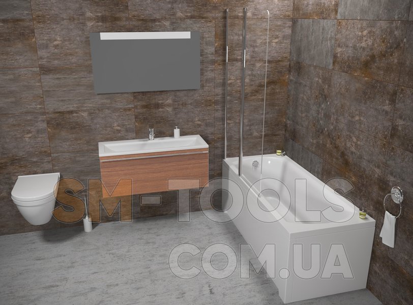 Аксессуары: опора, передняя и боковая панели в белом, сточный комплект для ванн.