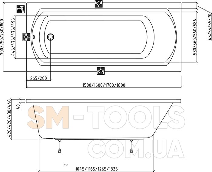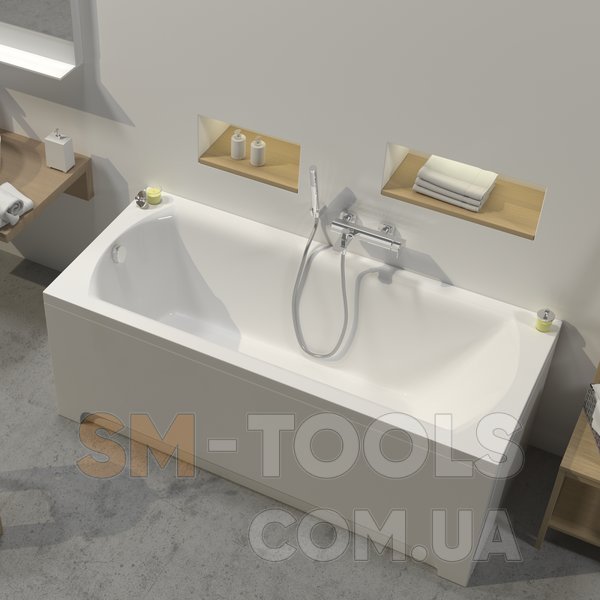 Аксессуары: опора, передняя и боковая панели в белом, сточный комплект для ванн.