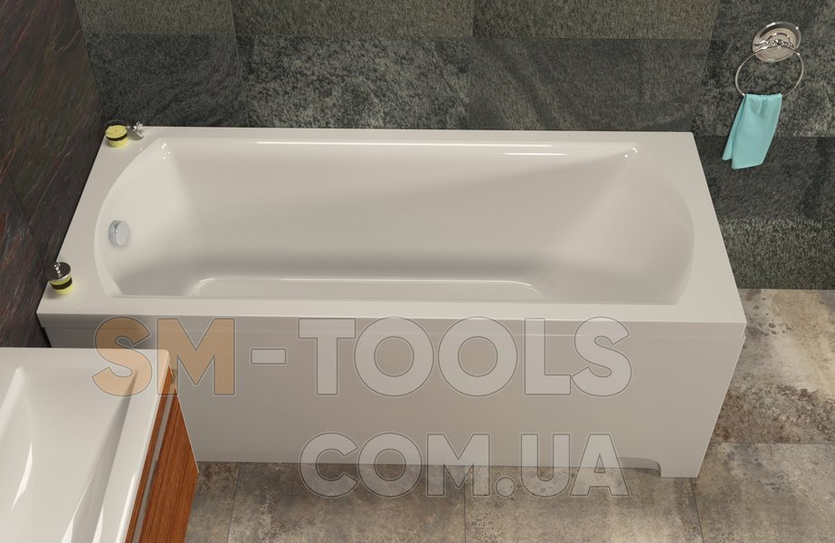 Аксессуары: опора, передняя и боковая панели в белом, сточный комплект для ванн.