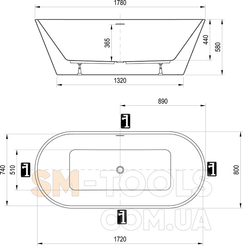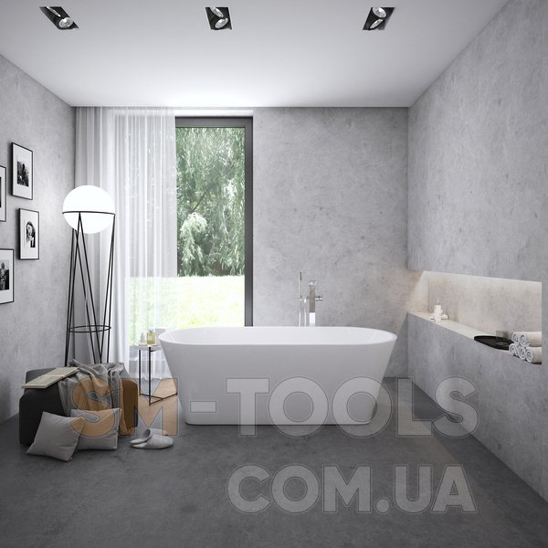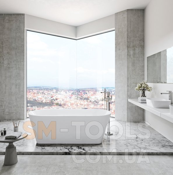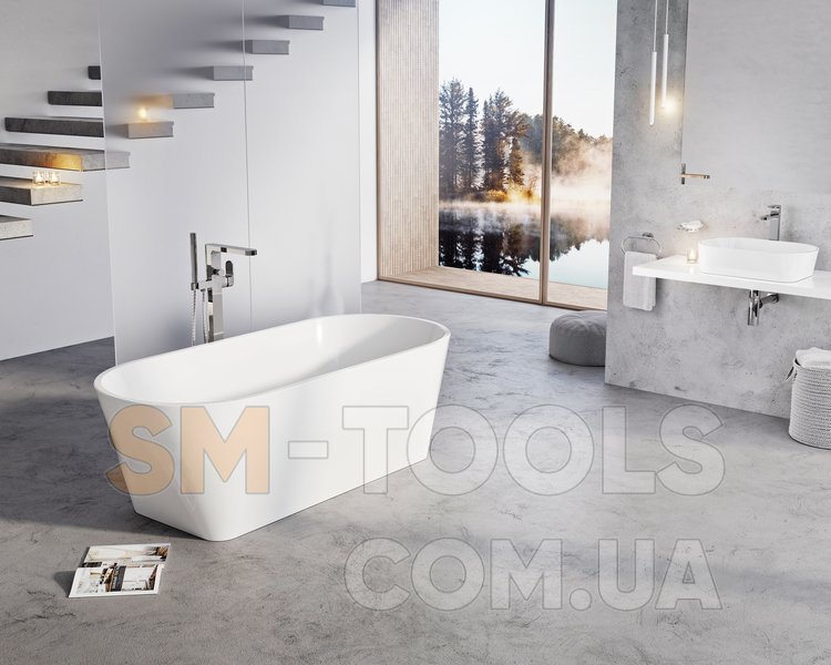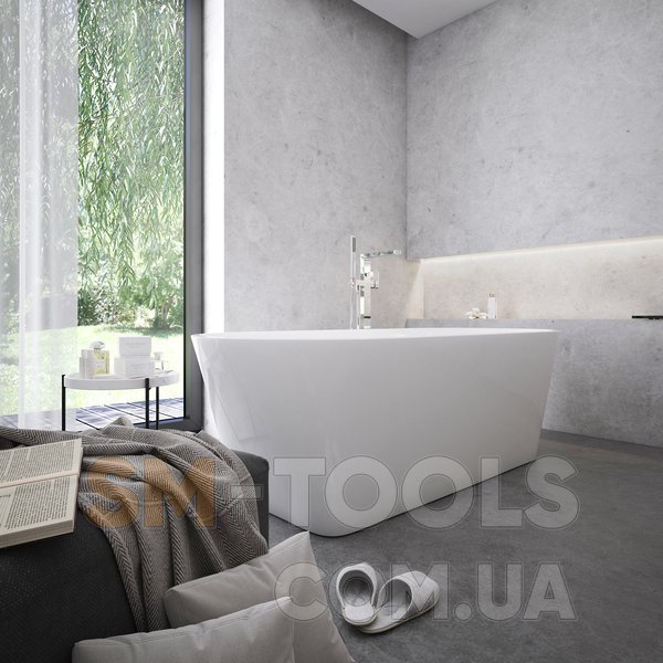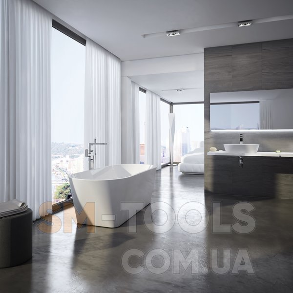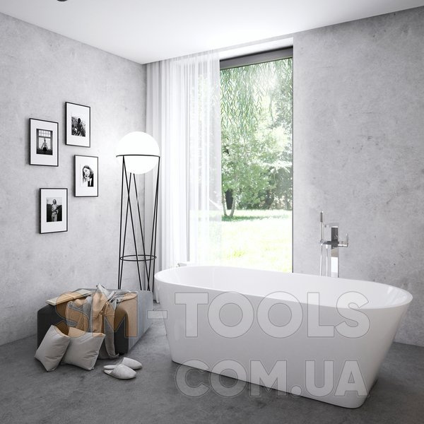 Ванна не може бути доповнена шторою для ванни. Розподіл води проводитися по підлозі як для зливу, так і для водопостачання для підлогового змішувача. Зливний комплект для ванни (наприклад, перелив, нерухомий злив, сифон, гідрозатвор та опора (ніжки) входять у комплект. Для ванни також доступний підлоговий змішувач Chrome CR 080.00.