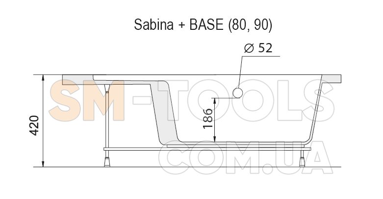 Фронтальна панель для литих акрилових глибоких піддонів Sabina того ж розміру, які призначені для установки на ніжки з панеллю. Для панелі Sabina необхідно придбати комплект кріплення – Panelkit Sabina 80 або 90.