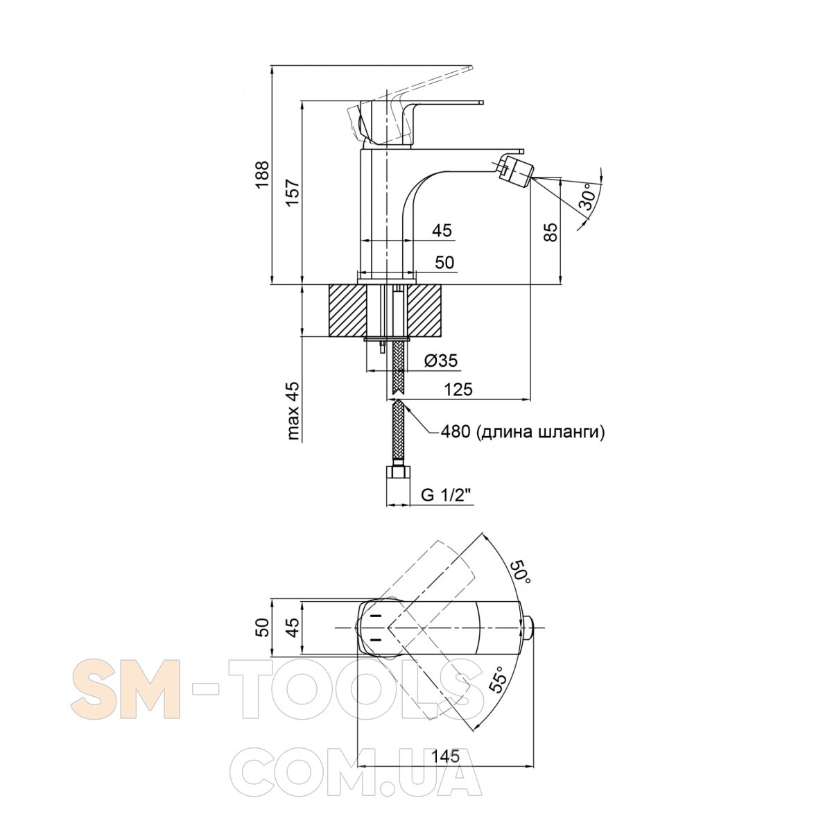 Высота излива, мм 85