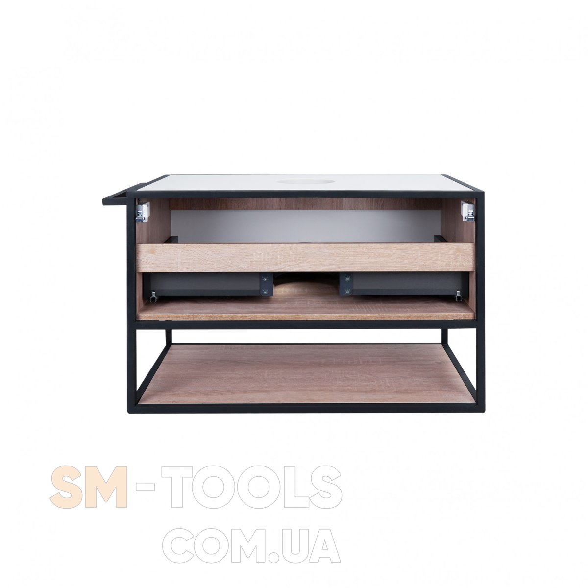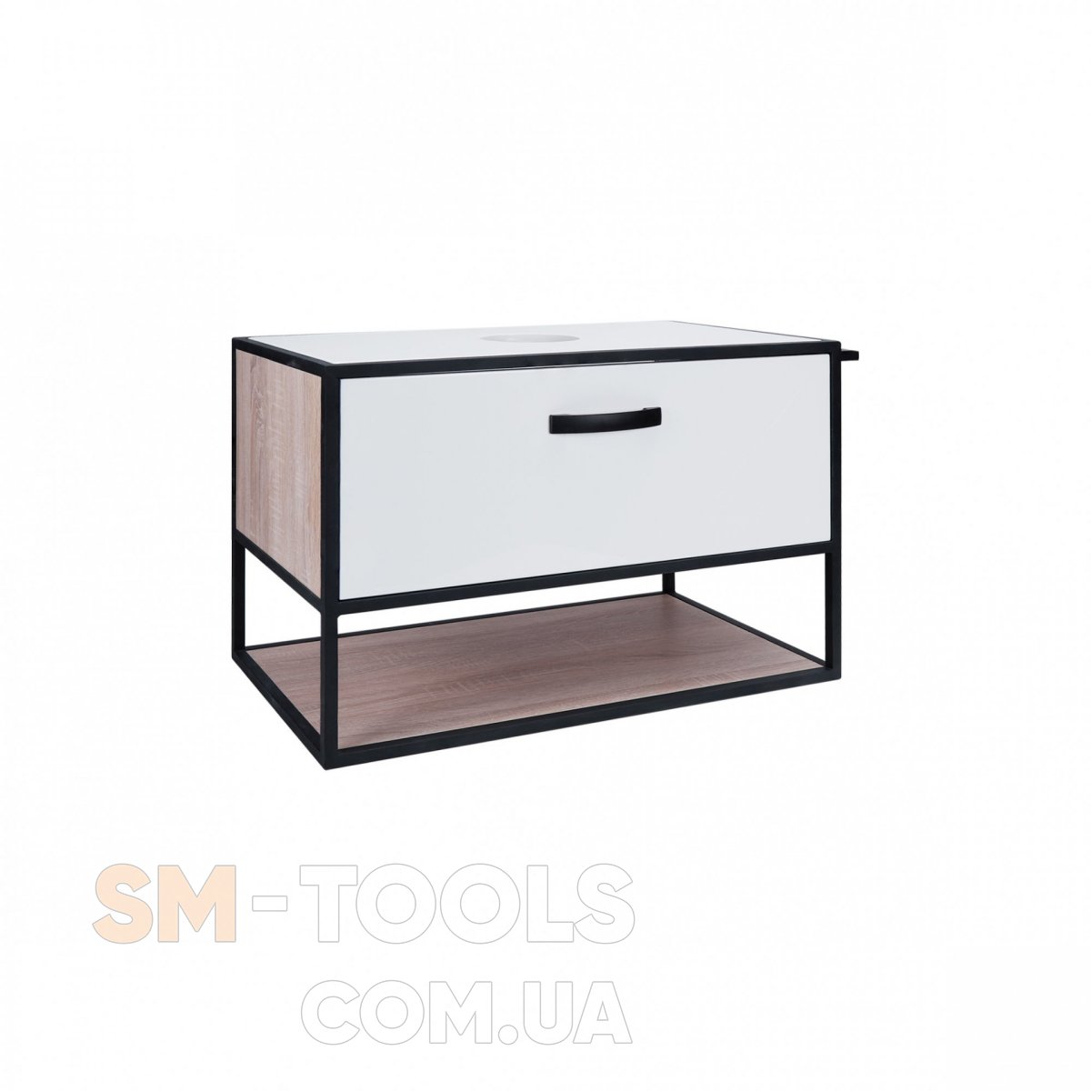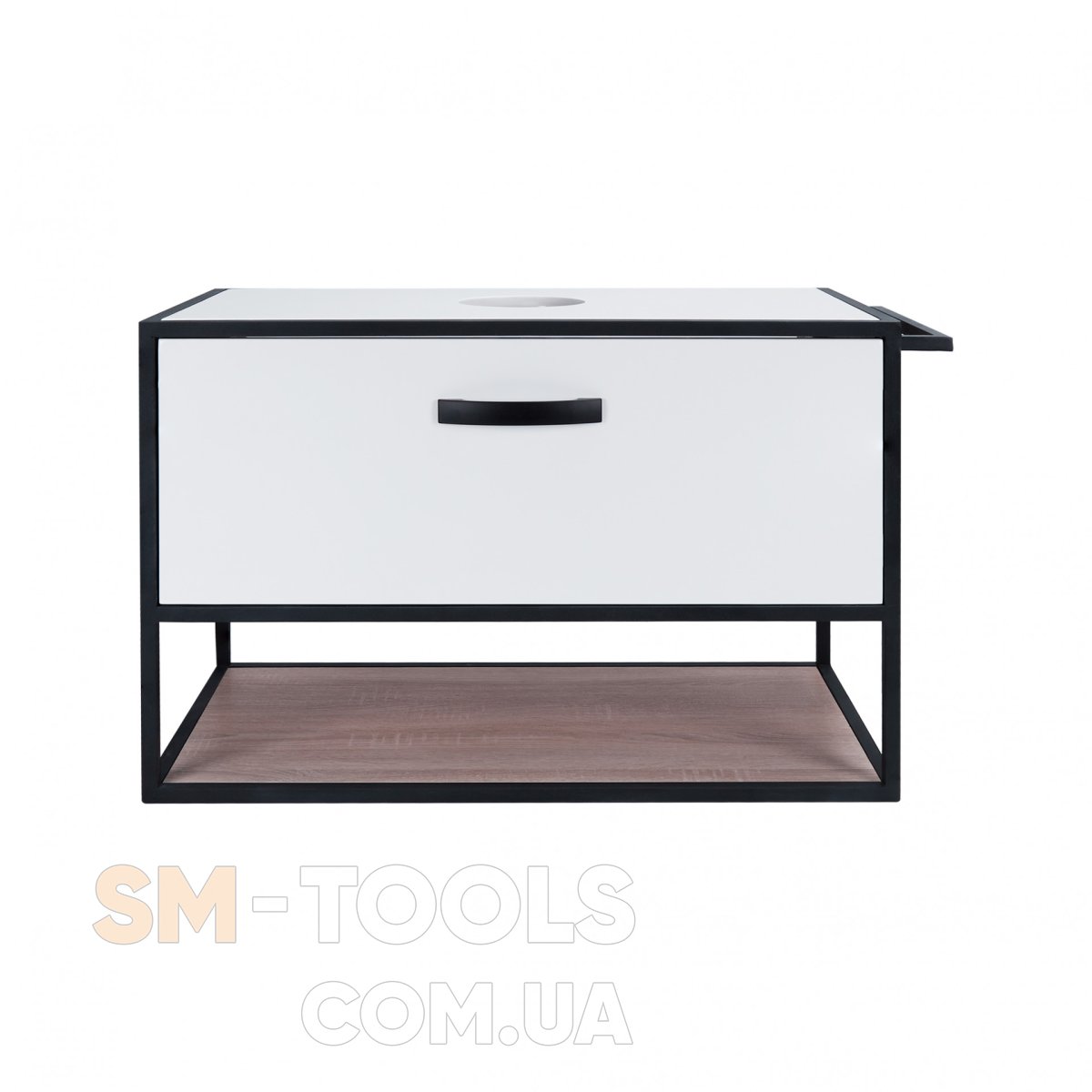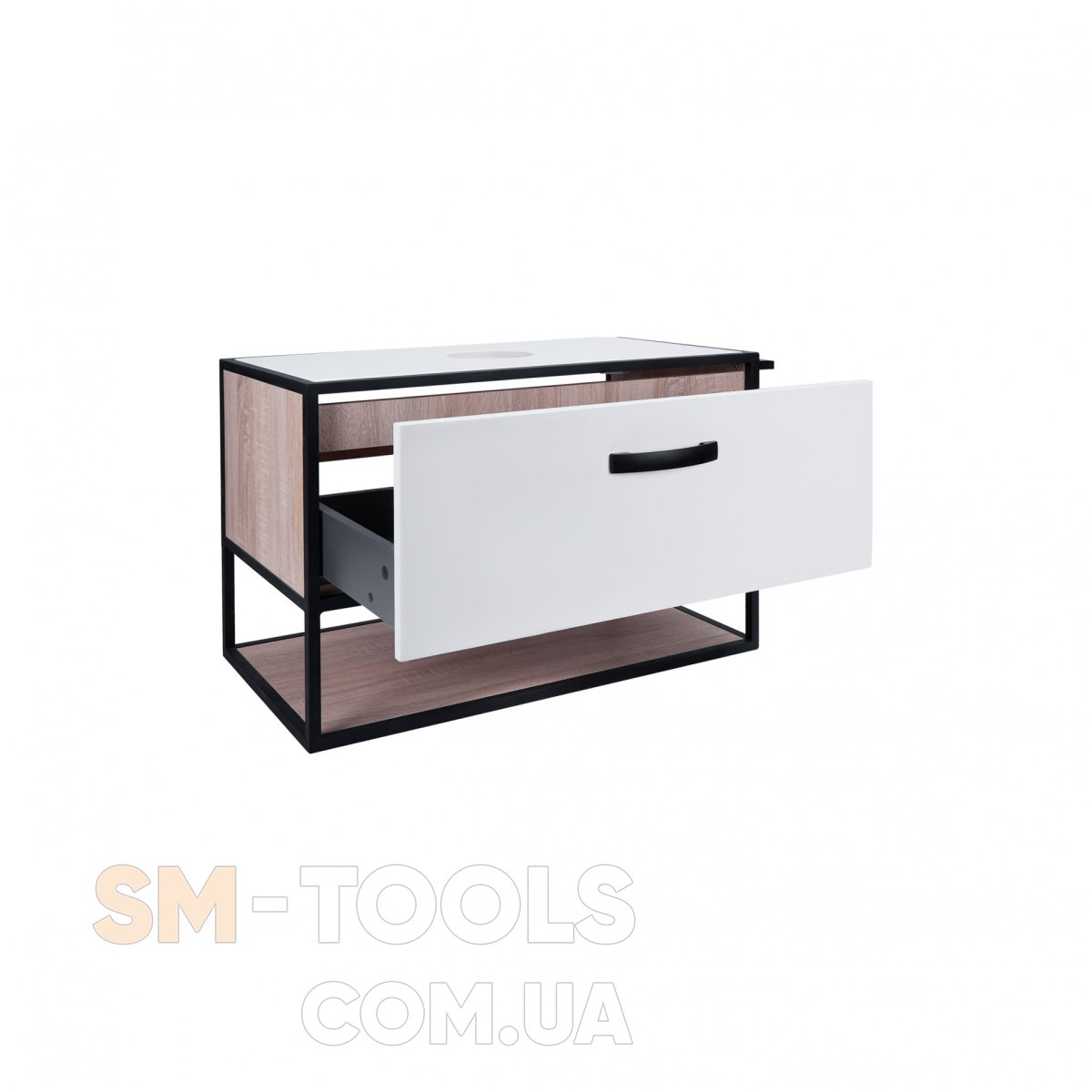 Подвесная тумба qtap taurus 800х476х469 white/whitish oak со столешницей qt2479tpt803wwo выполнена с отверстием для установки накладной раковины, а так же отверстием под сифон. двухцветный корпус тумбы изготовлен из лдсп, фасадная часть из мдф. изделие оснащено удобными и вместительным выдвижным ящиком с механизмом доводчика и полкой. Стальной крашеный каркас черного цвета придает тумбе оригинальный внешний вид, благодаря которому она впишется в дизайн любой современной ванной комнаты.