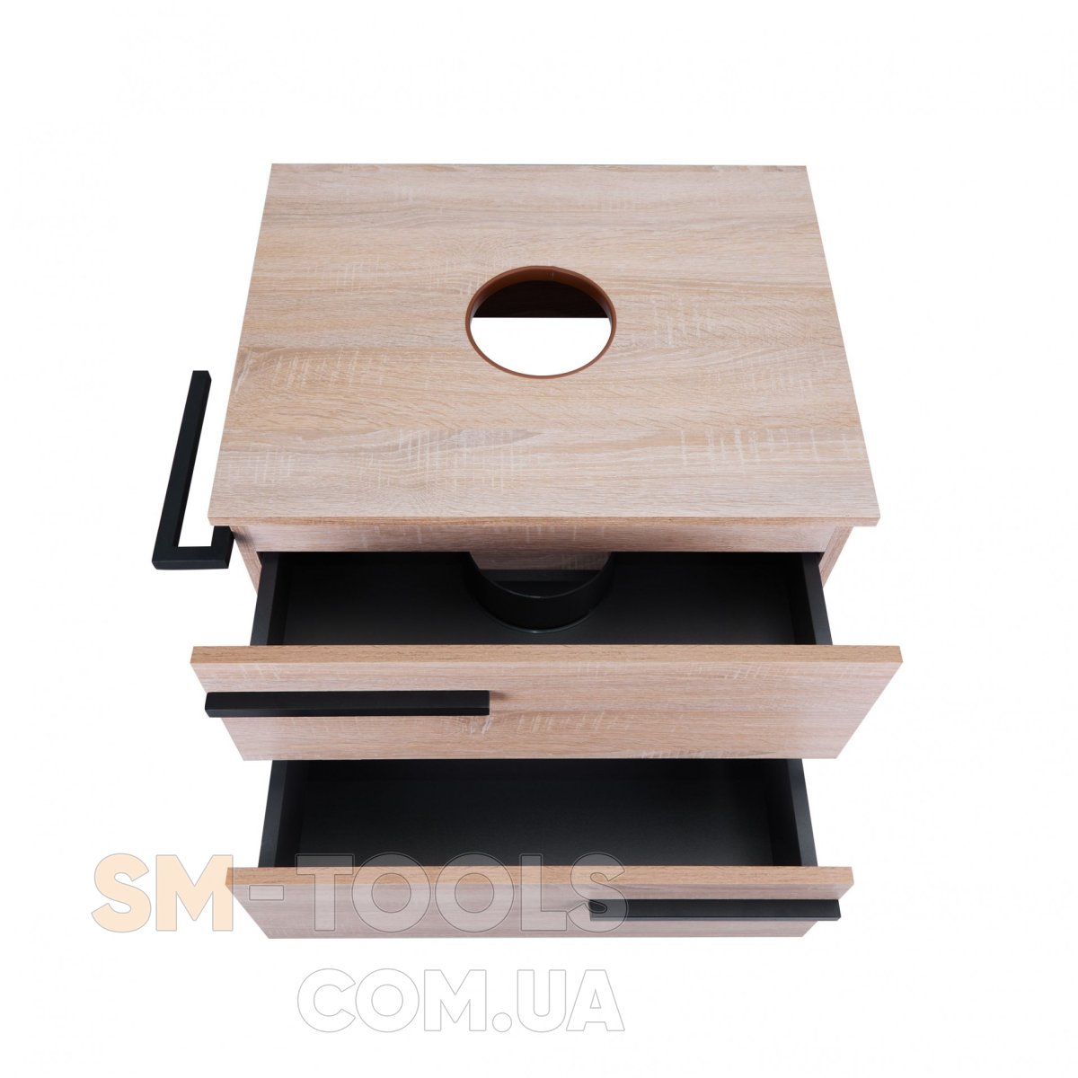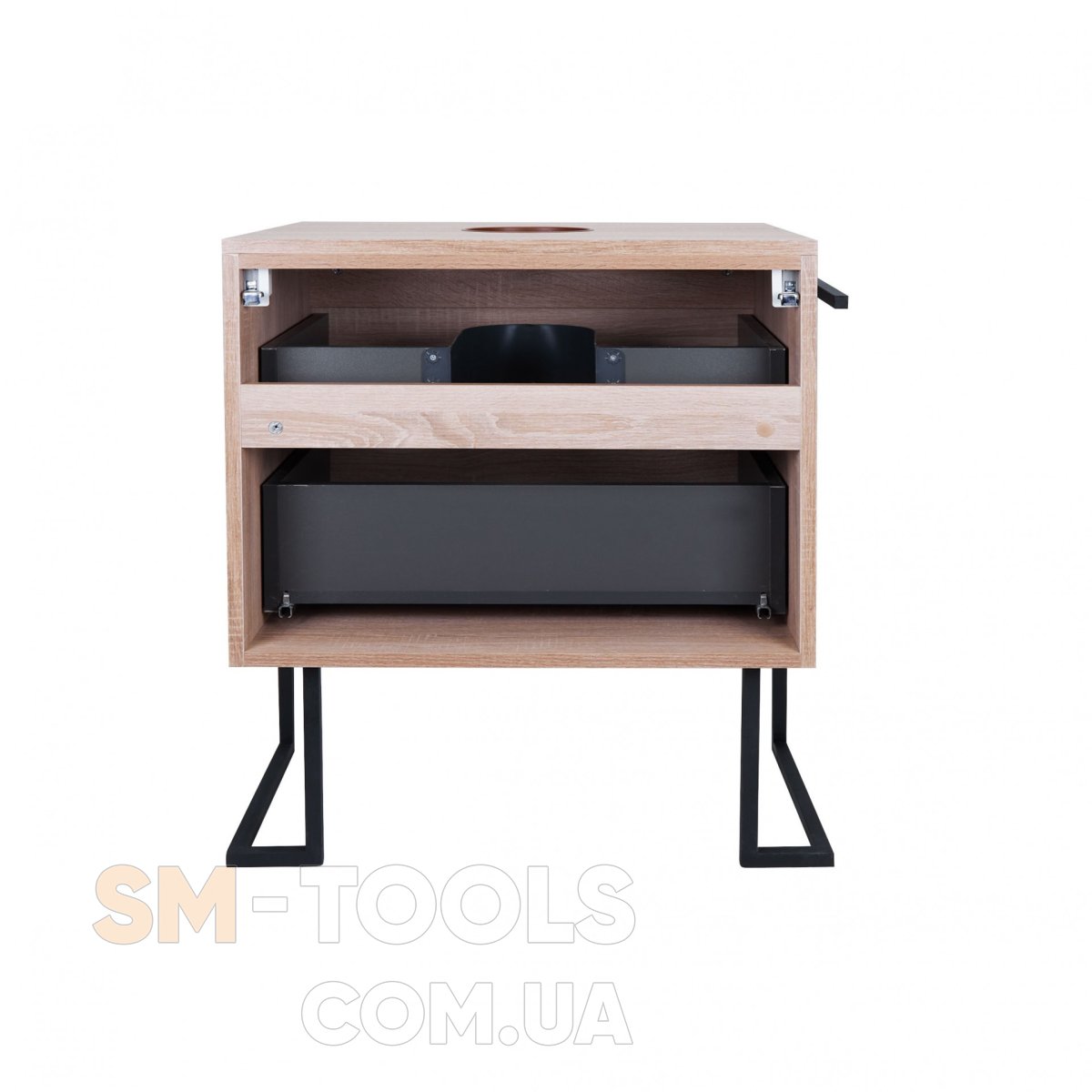 Напольная тумба qtap taurus 600х616х437 whitish oak со столешницей qt2480tnt603wo выполнена с отверстием для накладной раковины, а также отверстием под сифон. корпус тумбы и фасадная часть изготовлены из ЛДСП. изделие оснащено удобными и вместительными выдвижными ящиками с механизмом доводчика. цельнометаллический каркас черного цвета станет ярким акцентом. тумба выполнена в лаконичном стиле и впишется в дизайн любой современной ванной.