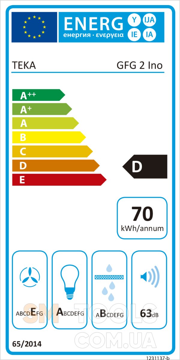 - Річне споживання енергії AEC кВт * год / рік (кВт * год): 70,2