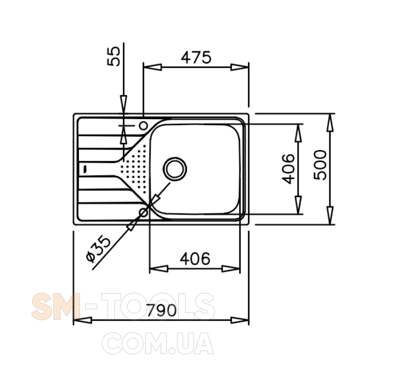 - ширина основной чаши (мм): 406