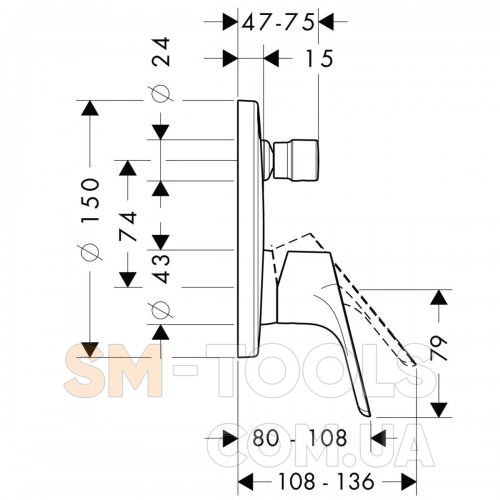 - подходит ко всем смесителям для ванны и душа, ко всем наружным частям термостатов СМ