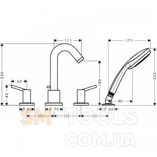 Характеристики Смеситель для ванны Hansgrohe Talis 32314000: