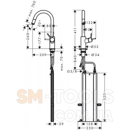 Характеристики Смеситель для кухни Hansgrohe Talis M52 73864000: