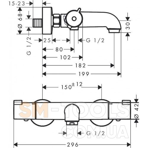 Характеристики Смеситель для ванны Hansgrohe Ecostat 1001 CL 13201000: