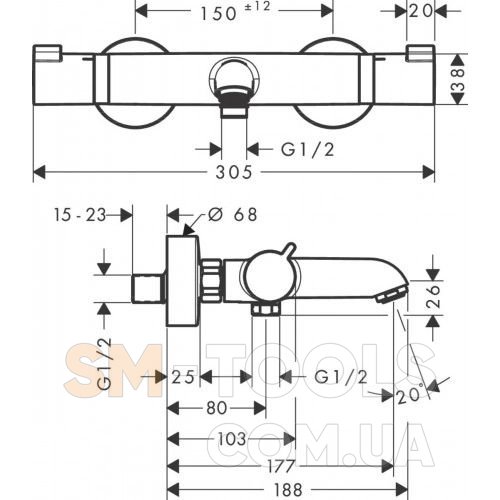 Характеристики Смеситель для ванны Hansgrohe Ecostat Comfort 13114670: