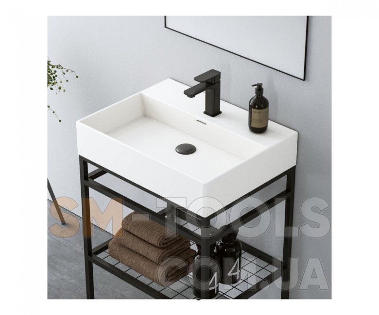 В комплекте керамический накладной умывальник