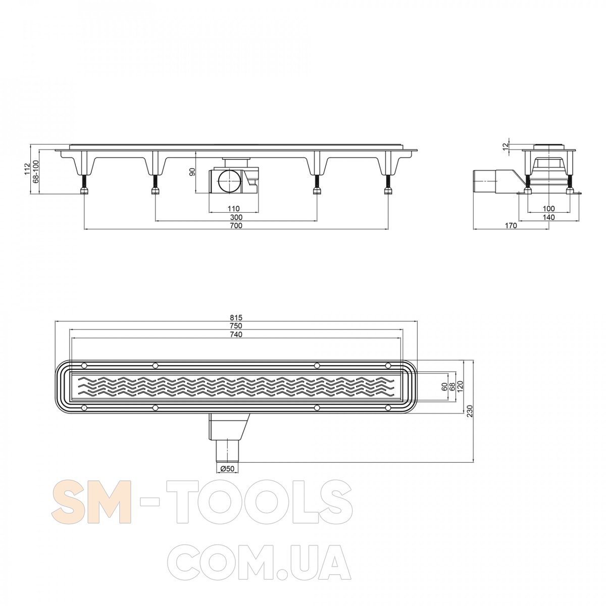 Характеристики Трап Qtap Taurus BLA50800304 линейный с комбинированным затвором и решеткой из нержавеющей стали: