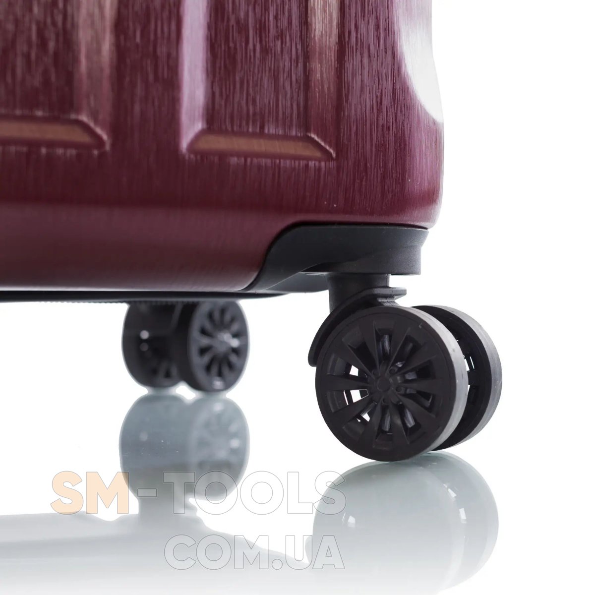 Чемодан оснащен четырьмя полноповоротными колесами системы Spinner с возможностью независимого разворота каждого колеса на 360°. Системой предусмотрено равномерное перераспределение нагрузки на каждое колесо, что в свою очередь способствует плавному качению и маневренности чемодана, прилагая при этом минимум усилий.