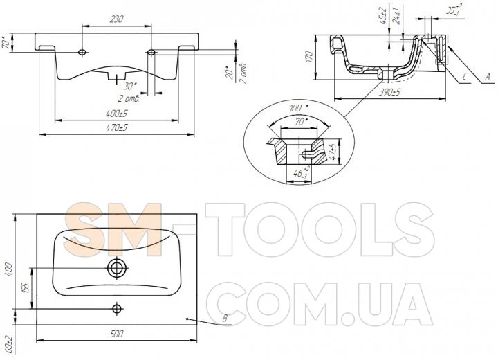 Представленная здесь врезная столешница или подвесная прямоугольная керамическая раковина K116-009 серии Moduo имеет габаритные размеры (ВхШхГ) 17 х 50 х 40 см, поставляется с переливным отверстием и оборудуется отверстием для установки смесителя*.