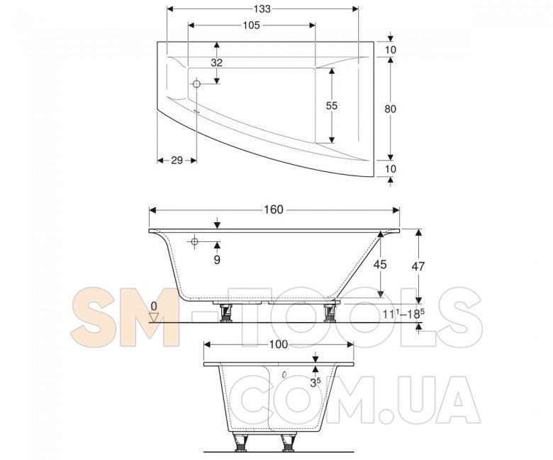 Характеристики Ванна Geberit Selnova Square 160х100 554.290.01.1: