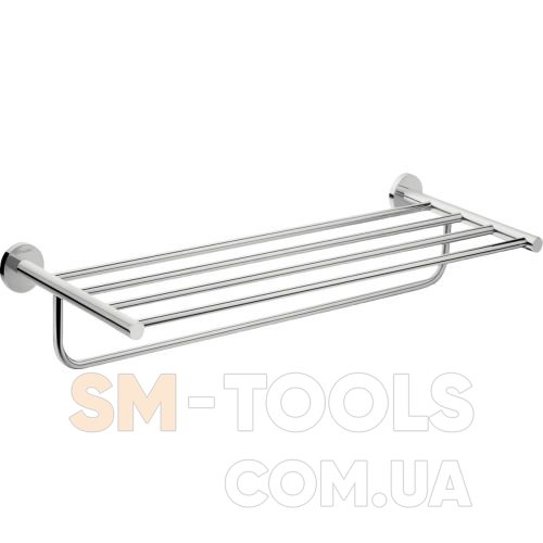 Щоб рушники зберігалися у ванній кімнаті на своєму місці і завжди були акуратно складені, встановіть в інтер'єрі спеціальну полицю. Вона відрізняється від звичайної полички тим, що виготовлена з металевих перекладин. На них рушники швидко сохнуть, отримуючи доступ до повітря. Полиця 41720000 повністю латунна з гладким хромованим покриттям. На ній передбачено п'ять окремих перекладин для рушників. Також верхню частину можна використовувати як полицю для складених сухих рушників та одягу, в той час як на нижній частині може сохнути мокрий текстиль. Довжини 600 мм достатньо для сушки і зберігання великих банних рушників, а також вафельних виробів для обличчя та рук. Поличка 41720000 кріпиться на шурупи — зручну для себе висоту ви підберете самостійно.