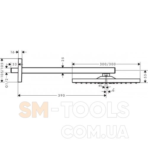 Розмір душової лійки: 300 х 300 мм