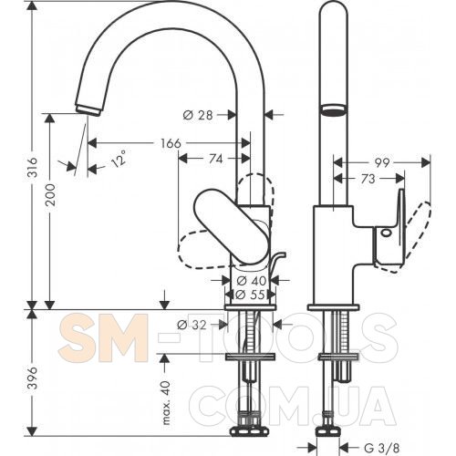 Угол поворота излива: регулировка на 2 уровня на 120° или 360°