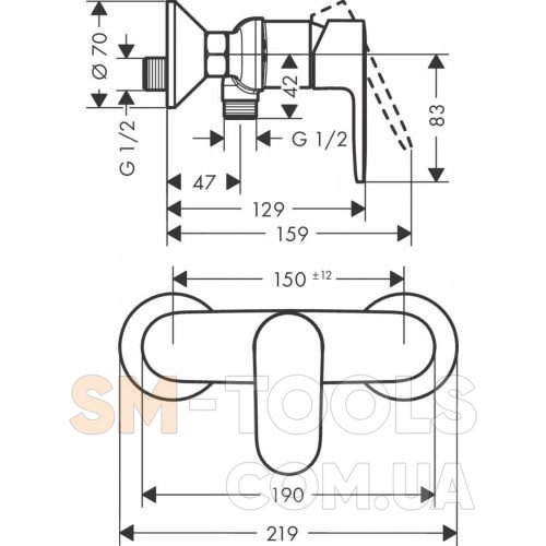 Комплект поставки: однорычажный смеситель для душа, розетки, S-соединение, инструкция по монтажу