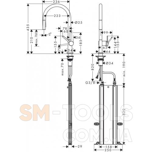 Требуется отверстие для смесителя Ø 35 мм
