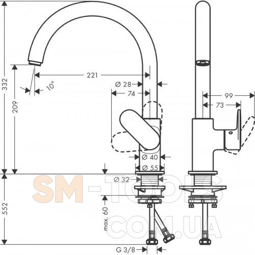 Характеристики Смеситель для кухни Hansgrohe Vernis Blend M35 71870670: