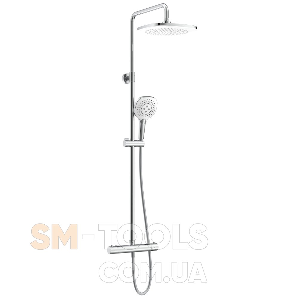 CENTRUM SQ система душевая (термостат для душа, верхний душ 255 мм ABS квадрат, ручной душ 127 мм 3 режима, шланг 170 см) белые крышки, хром