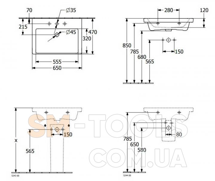 Характеристики Умивальник Villeroy&Boch Subway 3.0 4А706501: