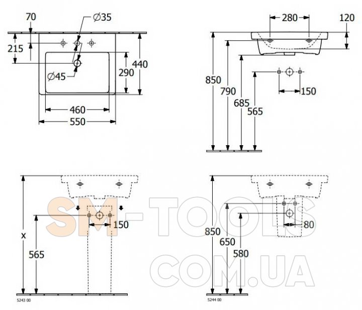 Характеристики Умывальник Villeroy&Boch Subway 3.0 4А705501: