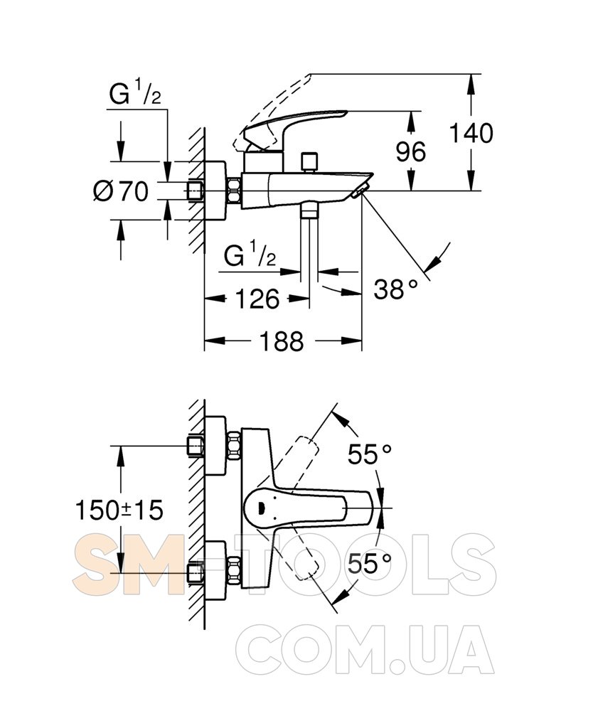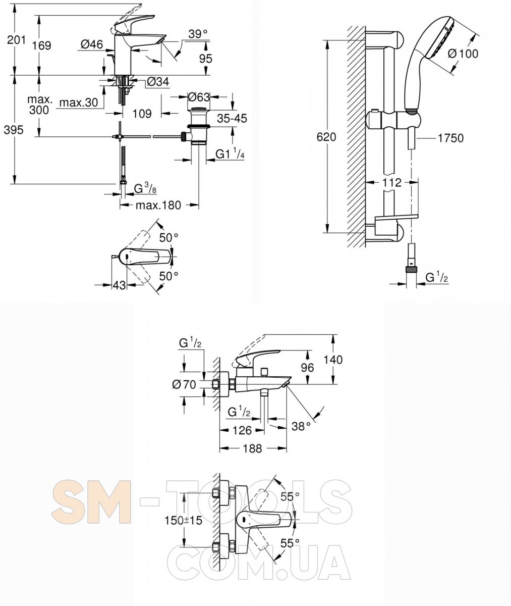 Характеристики Набор смесителей для ванной Grohe Eurosmart UA123238S0: