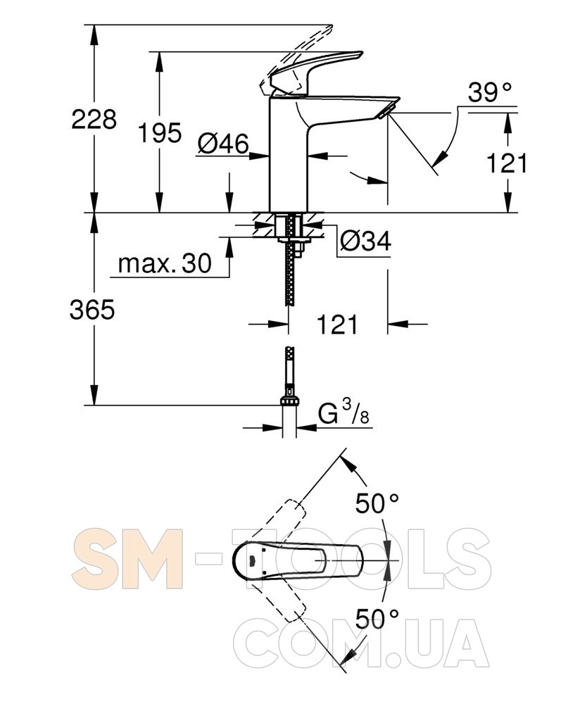 Размер смесителя для раковины: Размер М