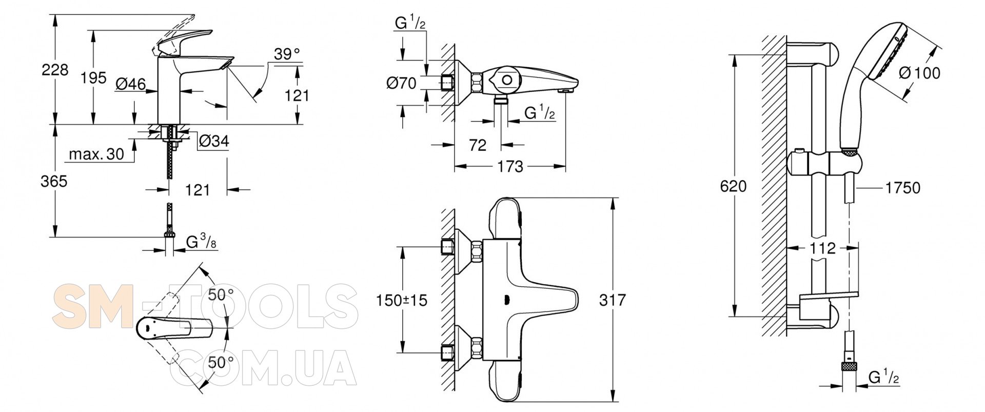 Характеристики Набор смесителей ванны Grohe Eurosmart New UA34101TM0: