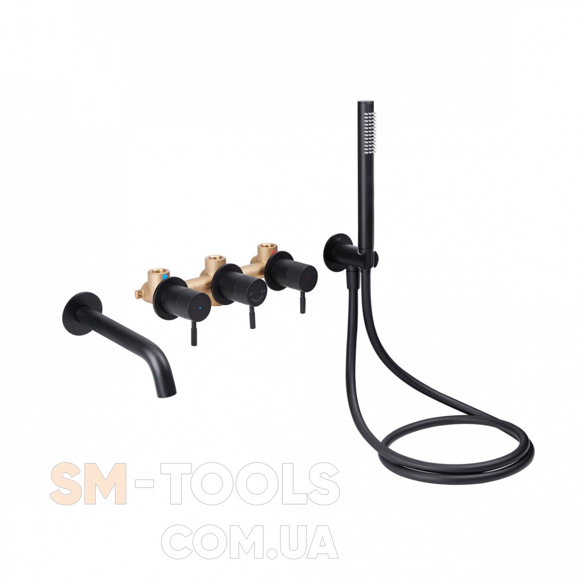 Смеситель скрытого монтажа для ванны qtap scorpio 3350105gb на три потребителя изготовлен из прочной и износостойкой латуни с равномерным матовым покрытием черного цвета, благодаря которому изделие имеет привлекательный внешний вид и более устойчиво к механическим повреждениям. подача и регулировка температуры воды осуществляется с помощью удобных вентелей, а переключение в душевой режим – поворотным дивертором. благодаря такому смесителю интерьер ванной будет выглядеть стильным и современным.