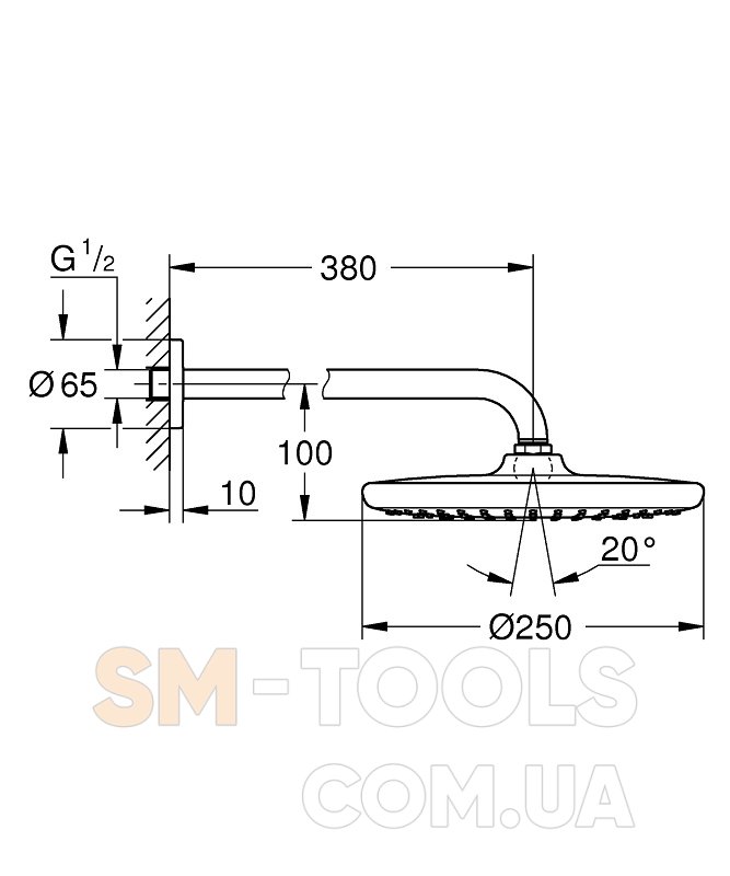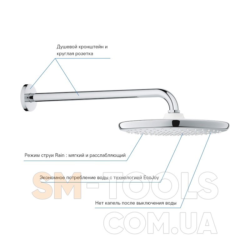 Tempesta 250 верхний душ с кронштейном к стене из EcoJoy (26668000) - 1 шт.
