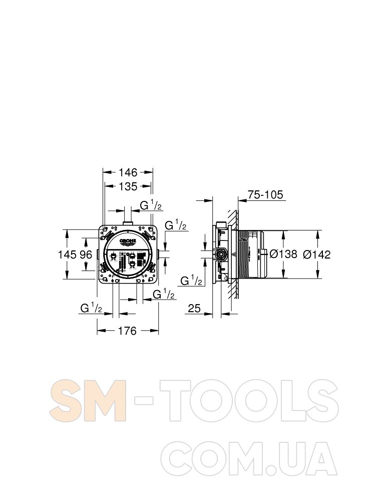 – Обратите внимание! Верхнюю монтажную часть данного смесителя необходимо дополнительно укомплектовать скрытой частью GROHE Rapido SmartBox 35600000.