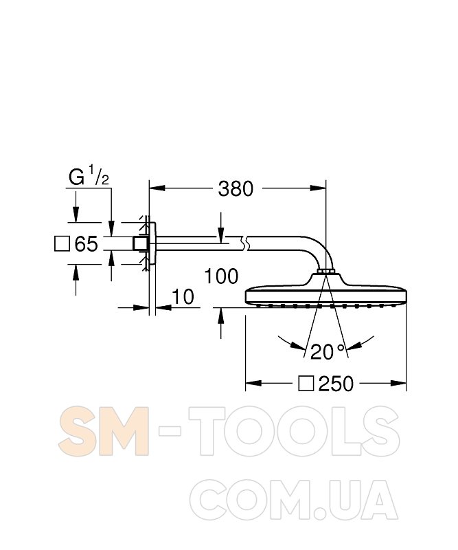 Верхний душ с кронштейном к стене Grohe Tempesta 250 Cube EcoJoy (26687000)