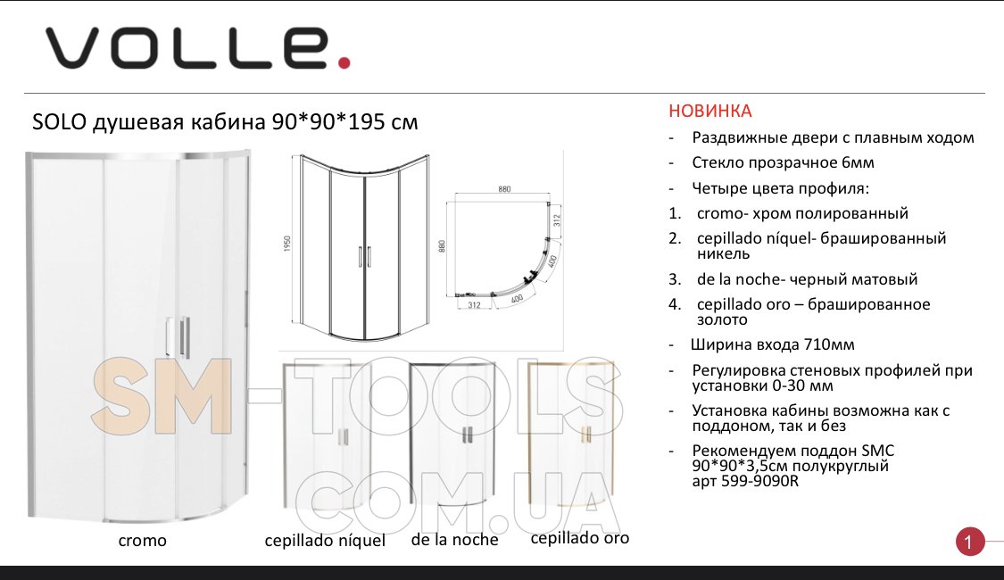 Описание Душевая кабина VOLLE Solo 90х90 1010.114501: