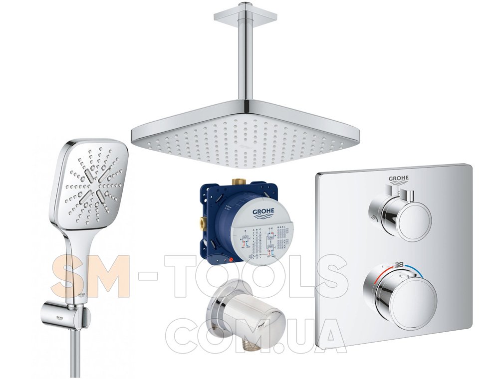 Душевая система Grohe Grohtherm Tempesta 250 Cube на 2 потребителя (с кронштейном к потолку)