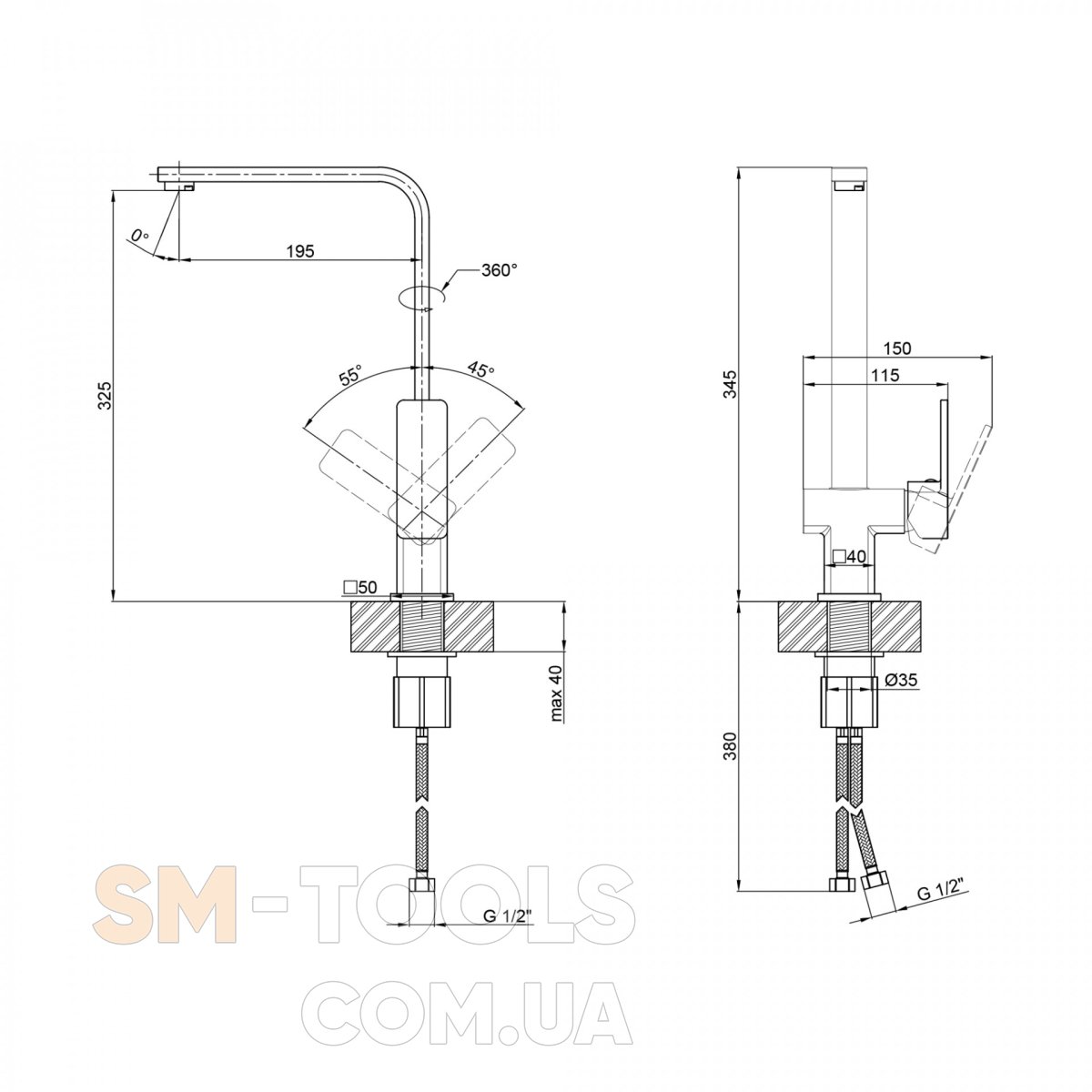 Высота излива, мм 325