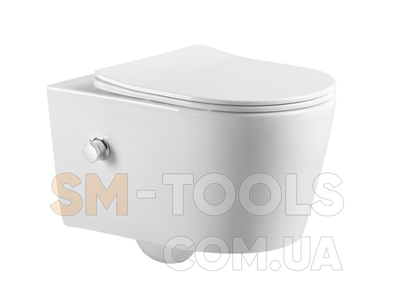 Имеет встроенную форсунку биде и интегрированный смеситель;