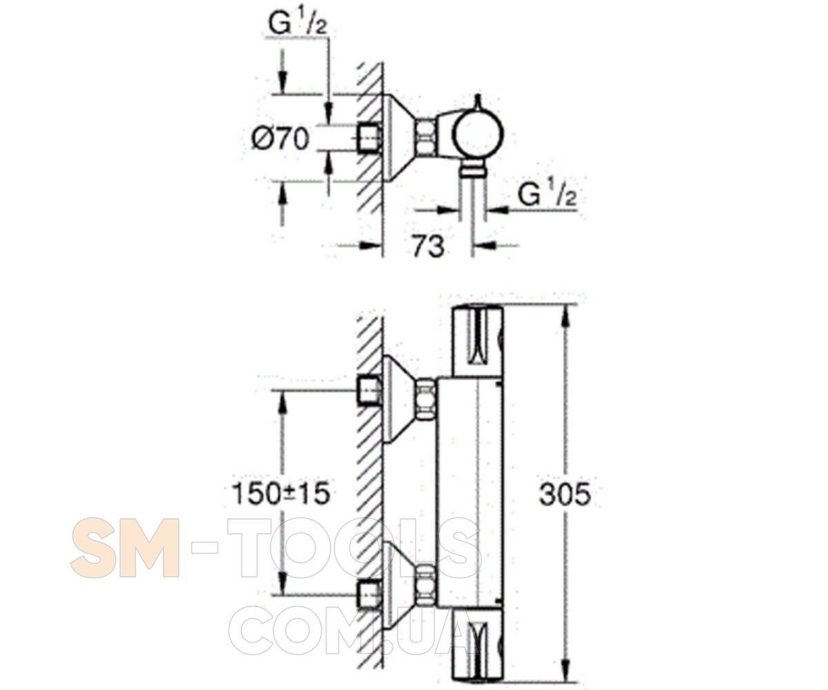 Термостат с хромовым покрытием GROHE StarLight® станет привлекательной для глаз точкой в вашей ванной комнате и будет легок в очистке его поверхностей.