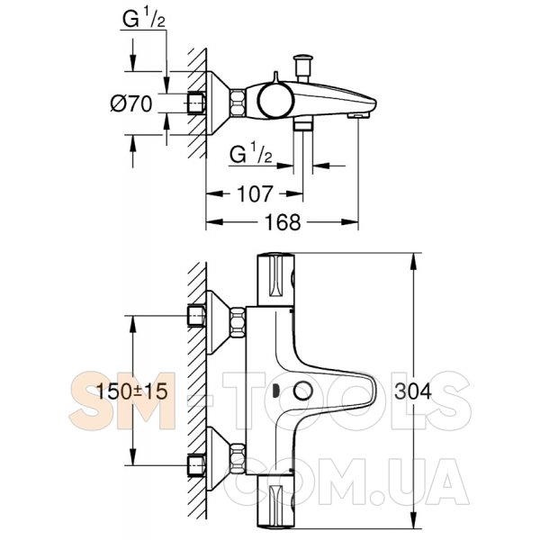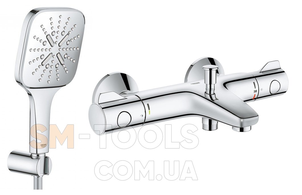 Смеситель для ванны Grohe Grohtherm 800 с душевой лейкой Grohe Rainshower Smartactive Cube 130