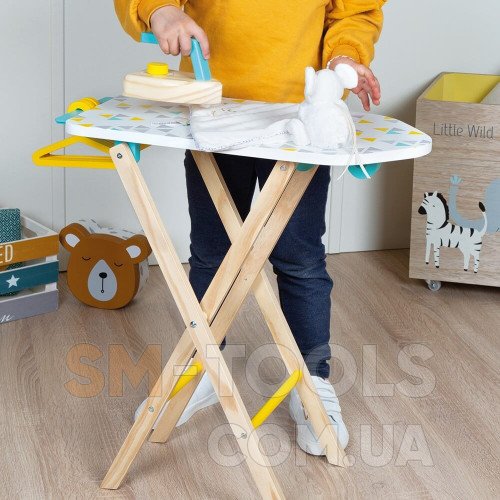 Навыки настоящих хозяев и хозяек дети могут в игровой форме тренировать с интереснейшим и реалистичным игрушечным набором «Гладильная доска». В наборе имеется складная гладильная доска с двумя уровнями высоты (49 и 55 см), утюг с вращающимся механическим диском регулировки и звучащий как настоящий, три вешалки. Все элементы набора изготовлены из качественной древесины. Рекомендовано для детей от 3 лет.
