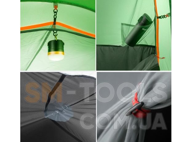Внутренняя палатка имеет 1 вход на молнии YKK® с двумя бегунками. Дверь из москитной сетки.