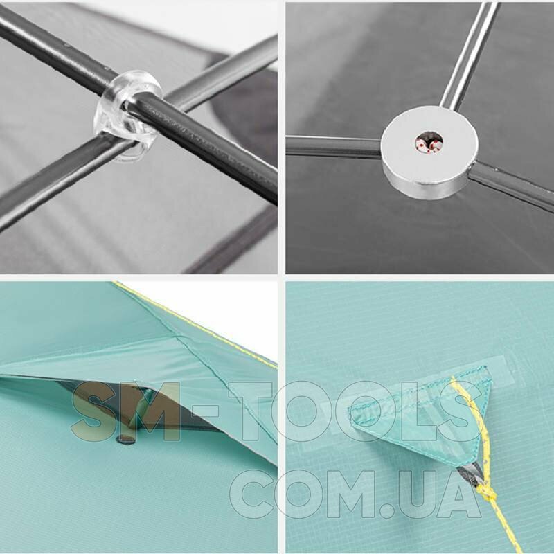 Материалы, которые были использованы для изготовления, это: одинарная силиконово-нейлоновая ткань 20D со степенью водостойкости 3000 миллиметров водяного столба, а также 210T плед. Кроме того, в состав вошла тонкая дышащая сетка из полиэстера B3. Жерди сделаны из сплава алюминия 7001. Общий вес такой модели 1,7 килограмма.