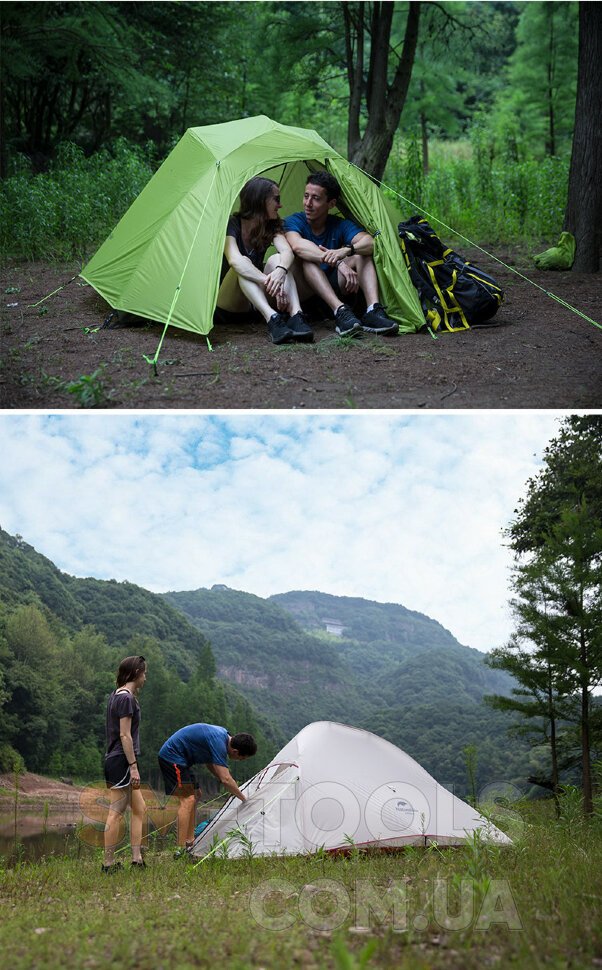 Палатка сверхлегкая трехместная с футпринтом Naturehike Cloud Up 3 Updated NH18T030-T, 210T, зеленый