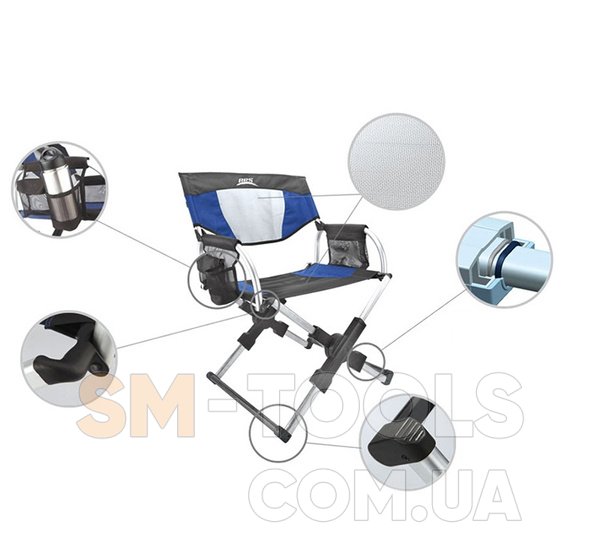 Изготовлен из высокопрочной ткани Оксфорд (ПВХ 600*500D) и сетчатой ткани. Стул прочен, устойчив к повреждениям, у него продумана конструкция, эргономична и надежна. При этом сам он невелик, не занимает много места даже в разложенном состоянии. Вес стула составляет 3,3 кг. Его габариты в сложенном виде: 80*32*10 сантиметров. В разложенном виде: 82*56*50 сантиметров. Сохраняется стул в сумке, откуда его можно быстро получить и разложить, не прилагая больших усилий.
